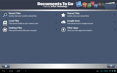 •Nothing new to learn. Documents To Go was designed & developed with the Android device user in mind - everything from the menus to the touchscreen to trackball is supported for a familiar look and feel.